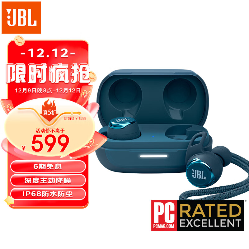 JBL Reflect flow pro 真无线运动蓝牙耳机入耳式主动降噪耳麦高音质音乐游戏 苹果华为小米通用 蓝色价格:599.00元!