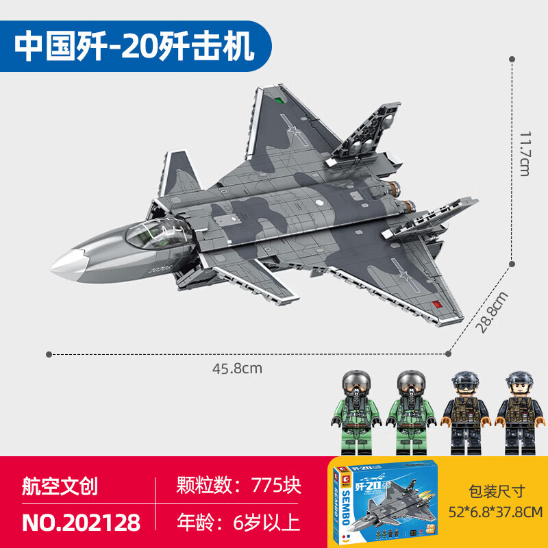 森宝积木积木军事玩具儿童拼插积木男孩节日礼物航空系列歼20战斗机202128价格:109.00元!