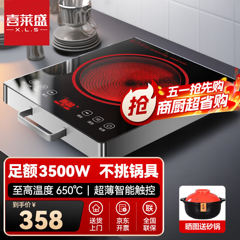 喜莱盛商用电陶炉3500W大功率家用电炒锅台式平面光波炉煲汤炉炒菜炉不挑锅具电炒炉可预约定时YP-3572C价格:368.00元!