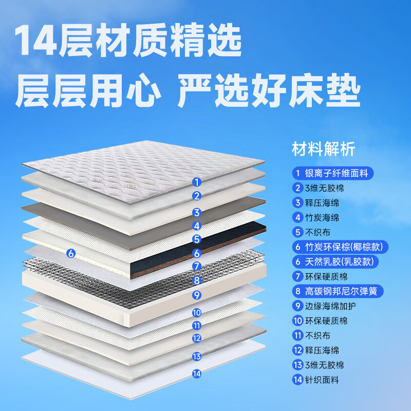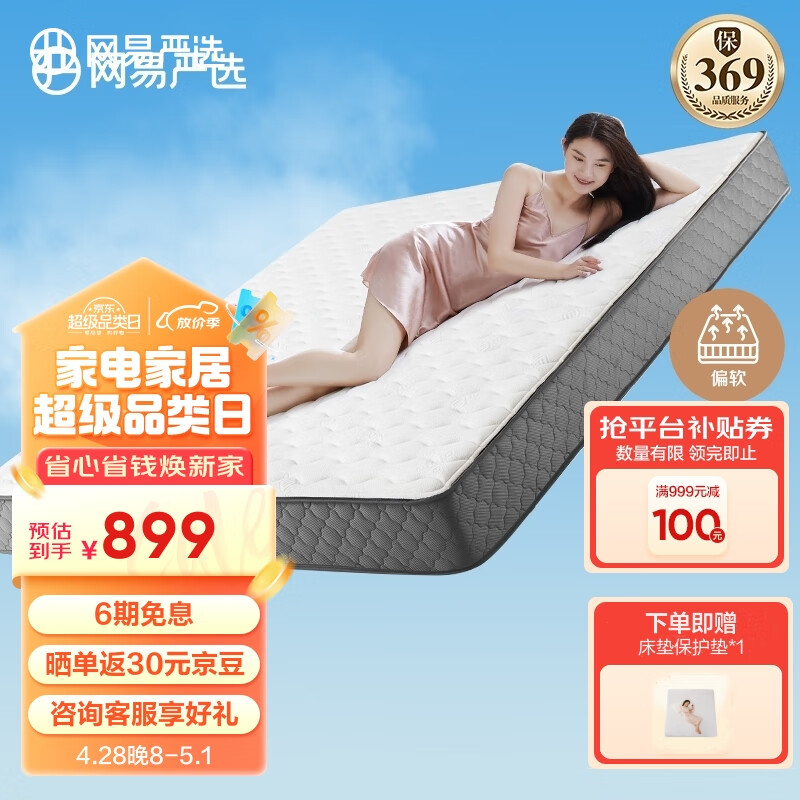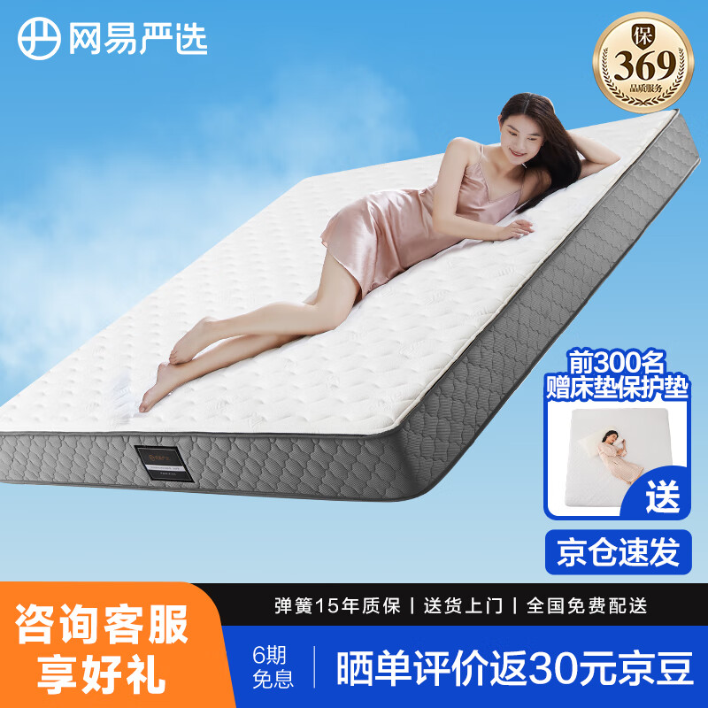 网易严选 弹簧床垫1.5米*2米 乳胶床垫 3D椰棕席梦思床垫 乳胶款价格:1099.00元!