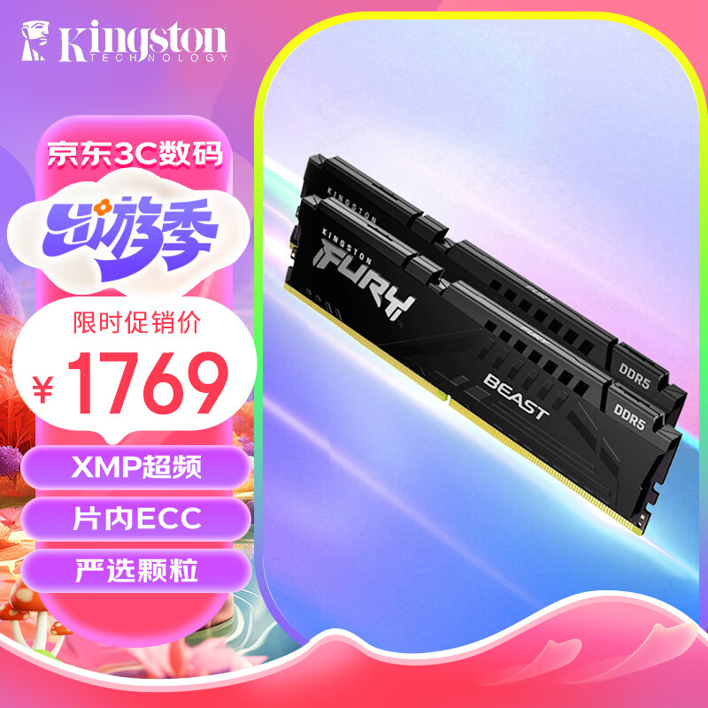 金士顿 (Kingston) FURY 64GB(32G×2)套装 DDR5 6000 台式机内存条 Beast野兽系列 骇客神条价格:1769.00元!