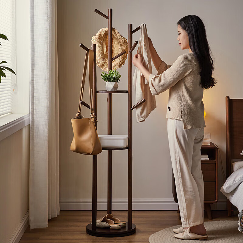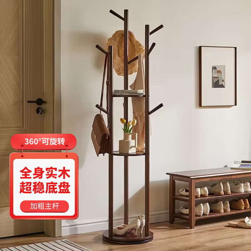 家逸实木衣帽架落地衣架卧室简约现代多挂简易衣服架子创意挂衣架棕色价格:329.00元!