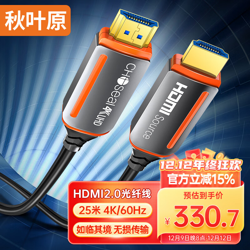 秋叶原 光纤HDMI线2.0版 4K60Hz发烧级高清线3D视频线 电脑连接电视投影仪显示器工程装修连接线 25米 QS8511价格:389.00元!