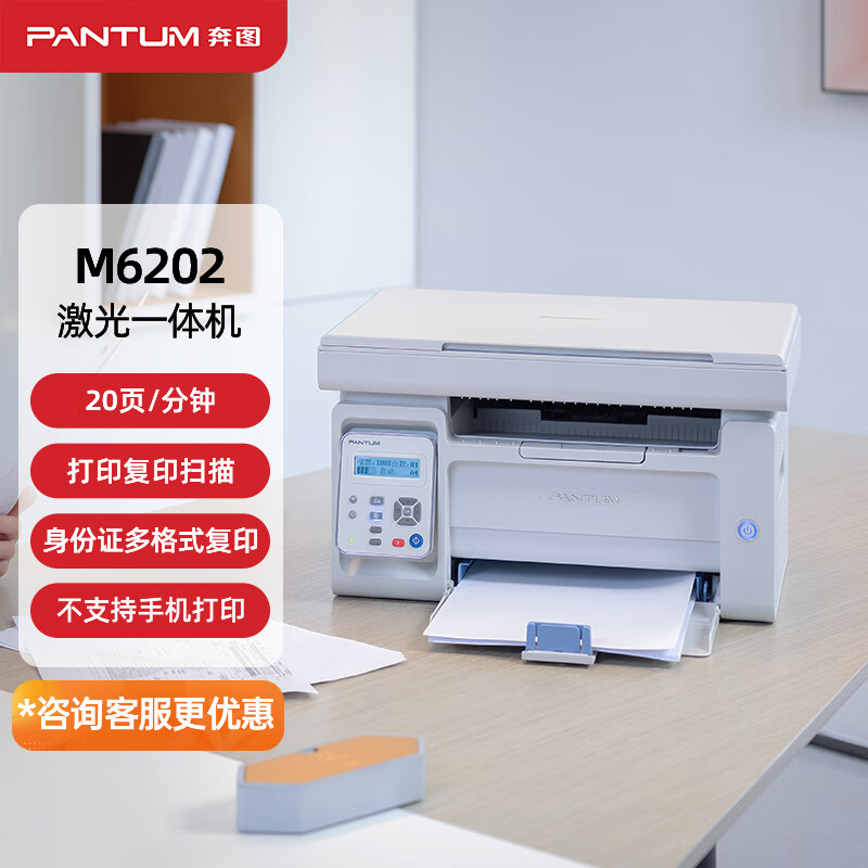 奔图(PANTUM)M6202 黑白激光多功能家用打印机 复印扫描一体 学生作业打印 仅支持电脑打印价格:749.00元!