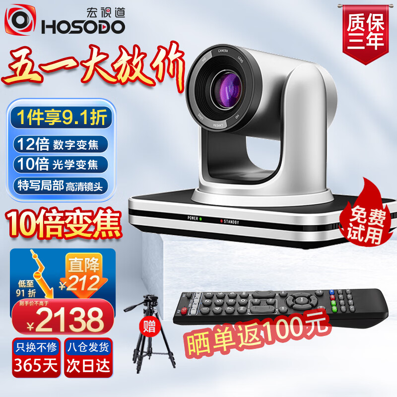 宏视道视频会议摄像头/10倍光学变焦高清云台摄像机1080P/网课教学教育在线办公会议室设备VC210价格:2350.00元!