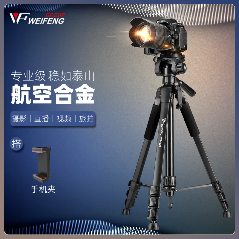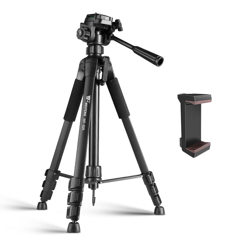 伟峰 WF-520 (手机夹套装)微单反铝合金轻便三脚架 摄影摄像手机自拍抖音直播户外投影仪落地支架价格:108.00元!