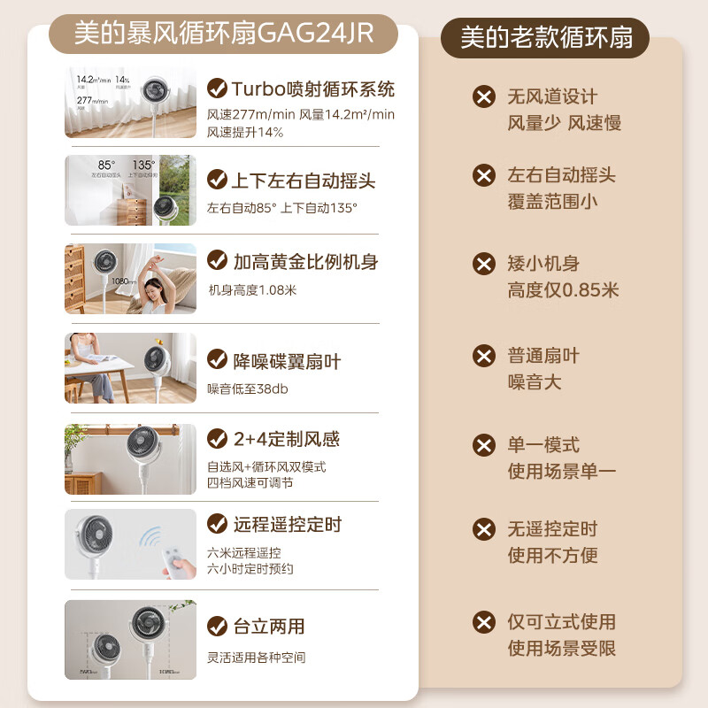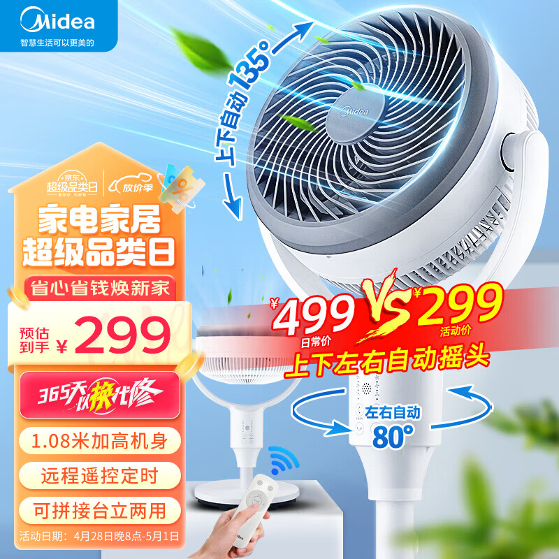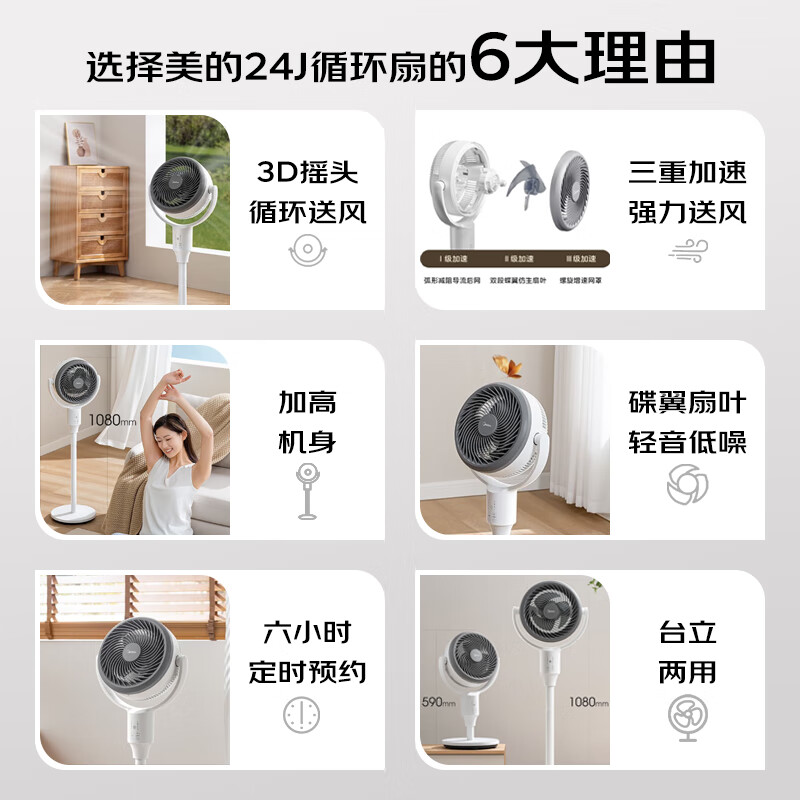美的(Midea)电风扇 空气循环扇家用立式遥控落地扇涡轮换气扇循环对流3D摇头电扇轻音低噪大风力节能风扇 GAG24JR【3D摇头 累计销售6W+】价格:399.00元!