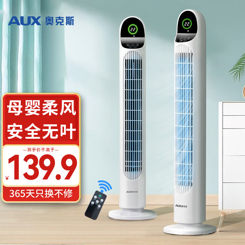 奥克斯(AUX)电风扇/遥控塔扇/易拆洗无叶风扇/塔式落地扇/家用电扇FT75-YG10R价格:139.90元!