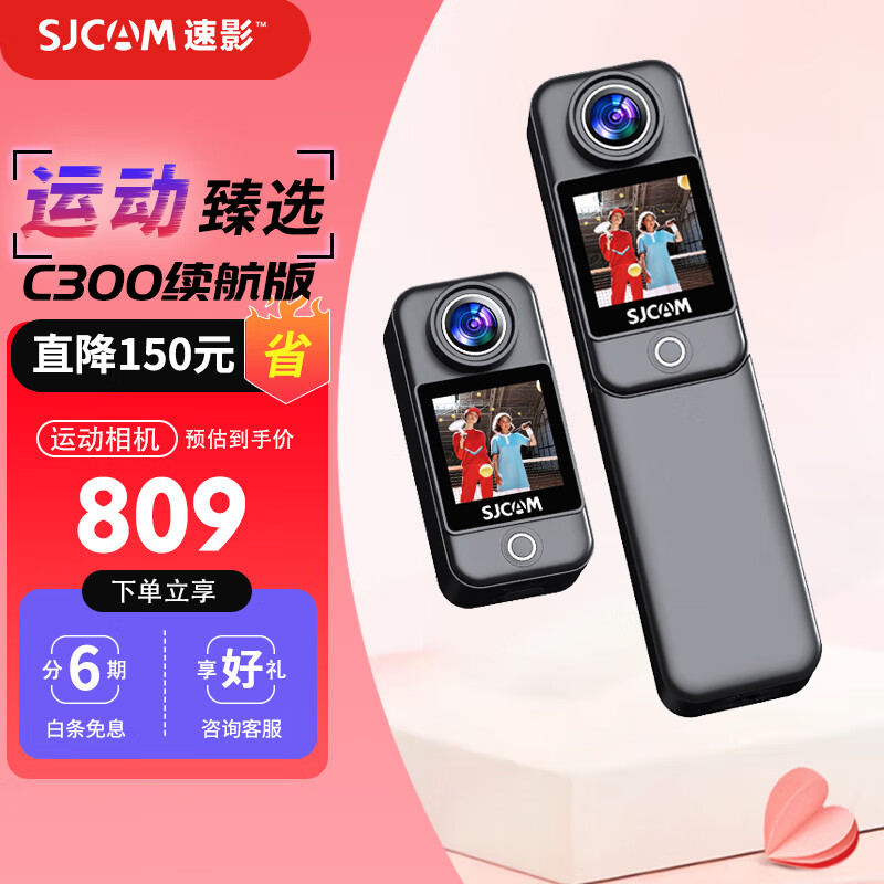 SJCAM速影 C300续航版360运动相机摩托车行车记录仪拇指相机防抖防水黑色64G+配件包价格:884.00元!