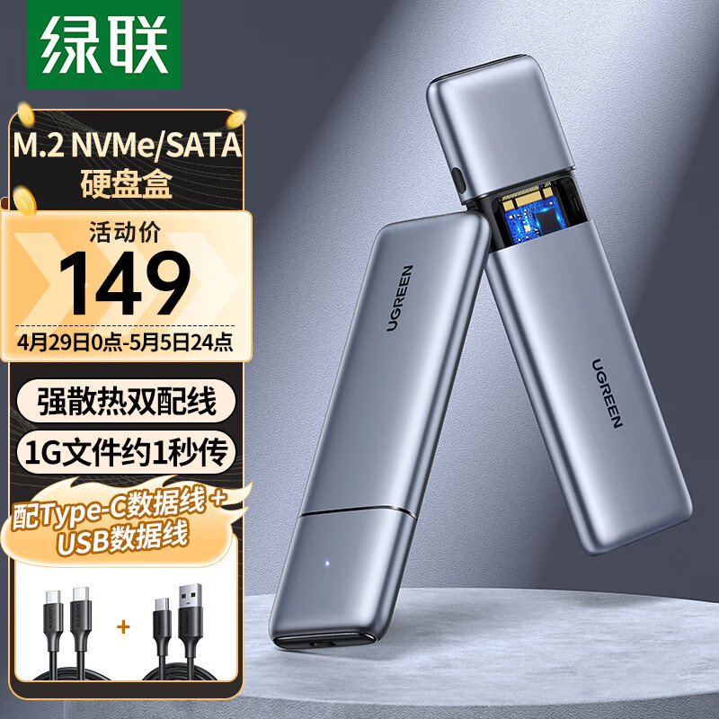 绿联 M.2 NVMe/SATA移动硬盘盒 Type-C3.2固态硬盘盒 适用笔记本电脑苹果15外接SSD机械硬盘外置盒子价格:199.00元!