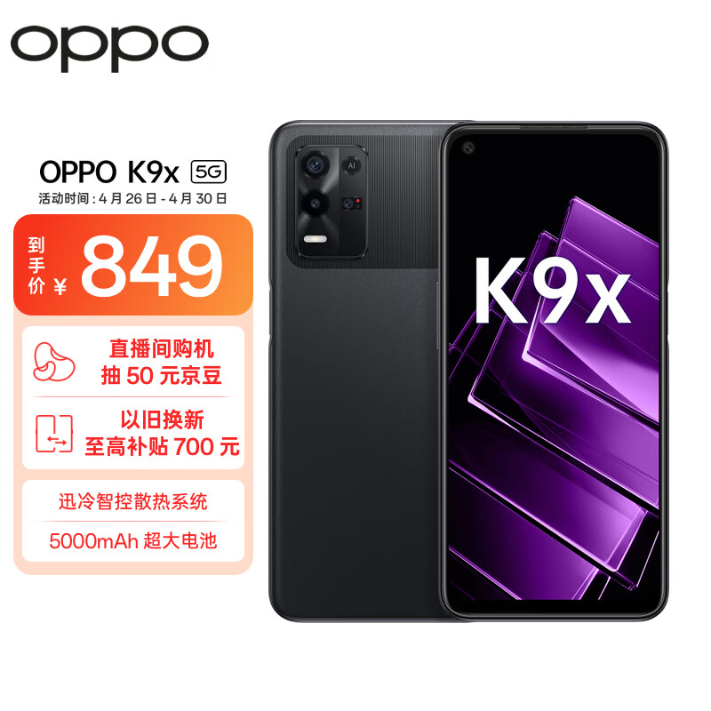 OPPO K9x 天玑 810 5000mAh长续航 快充 8GB+128GB 黑曜武士 老人安卓游戏电竞智能学生直屏拍照5G手机价格:1099.00元!