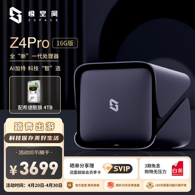 极空间私有云Z4Pro 16G版四盘位Nas网络存储家庭个人相册备份文件同步【配4T希捷酷狼硬盘】钛金灰价格:3899.00元!