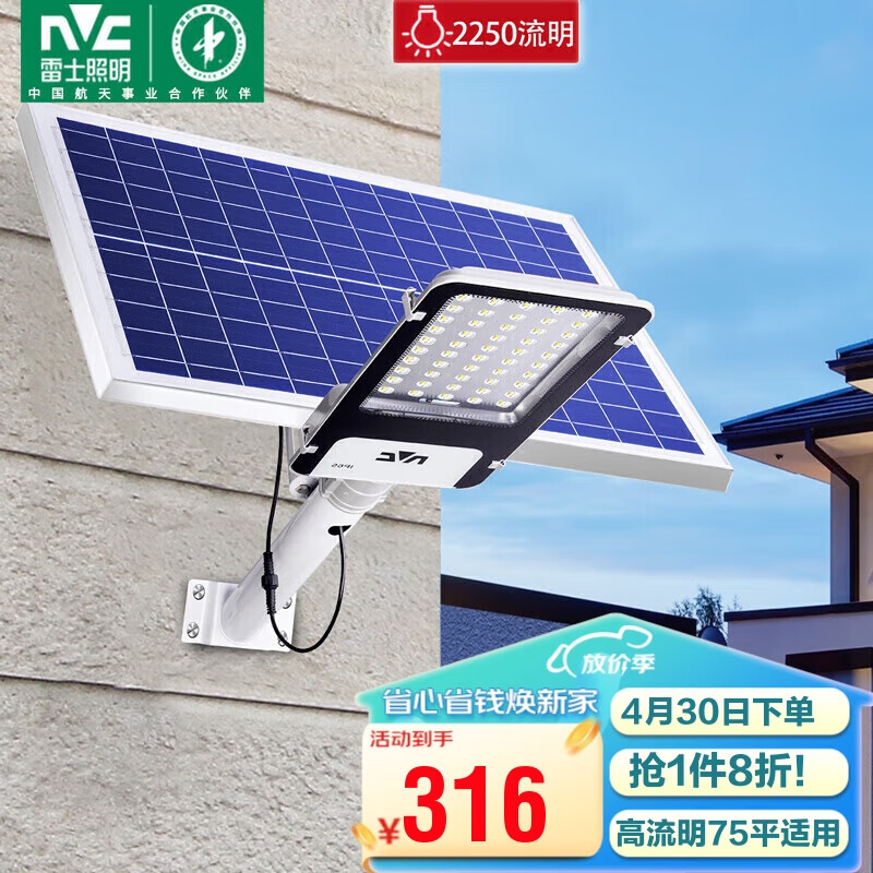 雷士(NVC)太阳能灯庭院灯路灯户外高亮投光灯防水光控遥控1750lm+照约75㎡价格:395.00元!