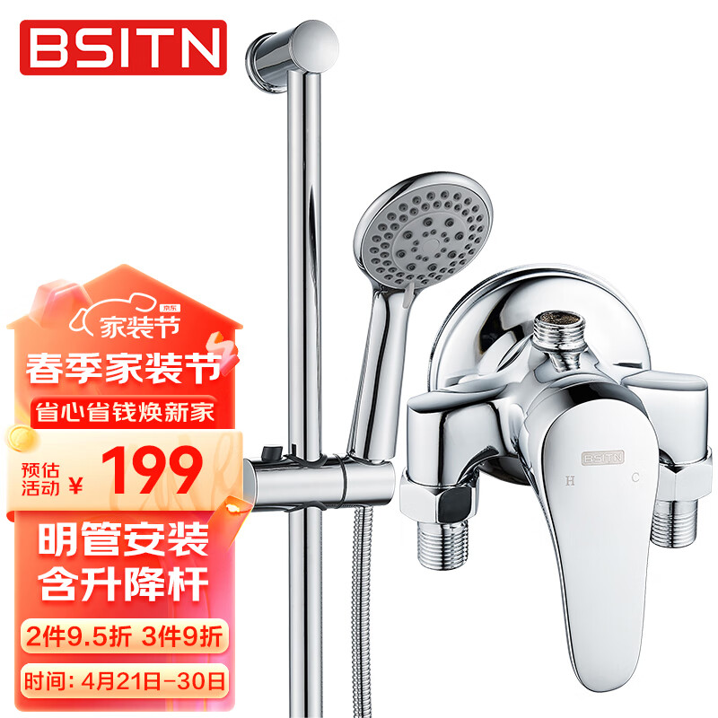 BSITN明装混水阀淋浴水龙头花洒套装小户型升降杆简易花洒B7206价格:199.00元!