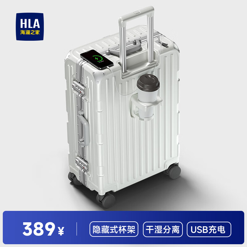 海澜之家(HLA)行李箱男女学生铝框拉杆箱旅行密码托运皮箱 象牙白24英寸价格:419.00元!