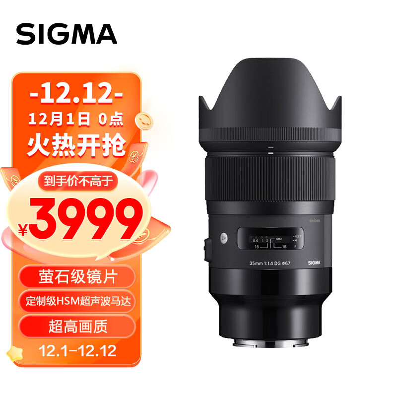 适马(SIGMA)Art 35mm F1.4 DG HSM 全画幅 大光圈定焦镜头 人像街拍夜景(索尼E卡口)价格:3999.00元!