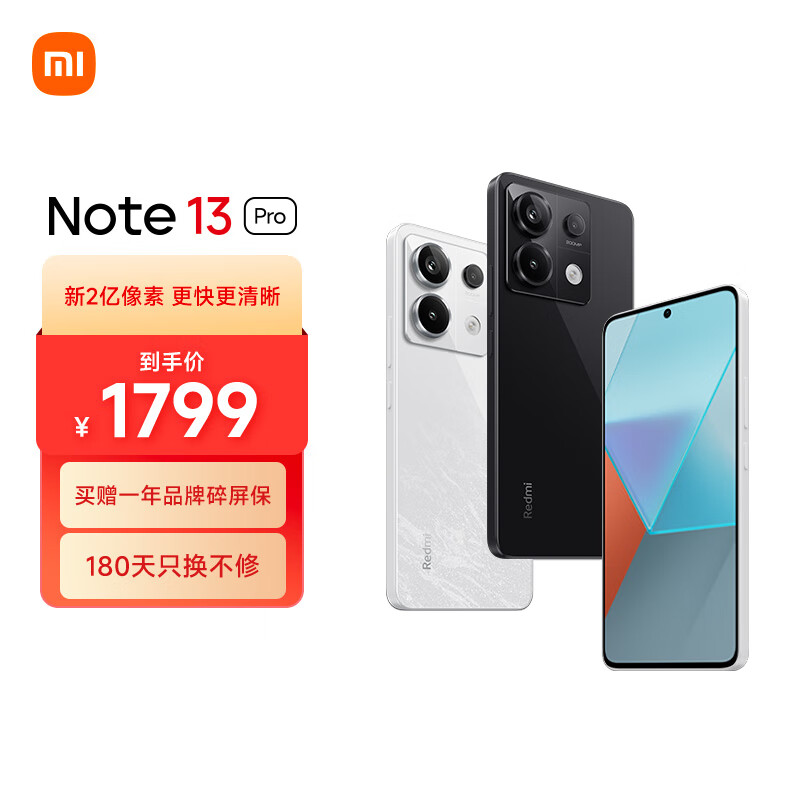 小米Redmi Note13Pro 新2亿像素 第二代1.5K高光屏 12GB+512GB 子夜黑 SU7 5G手机价格:1799.00元!