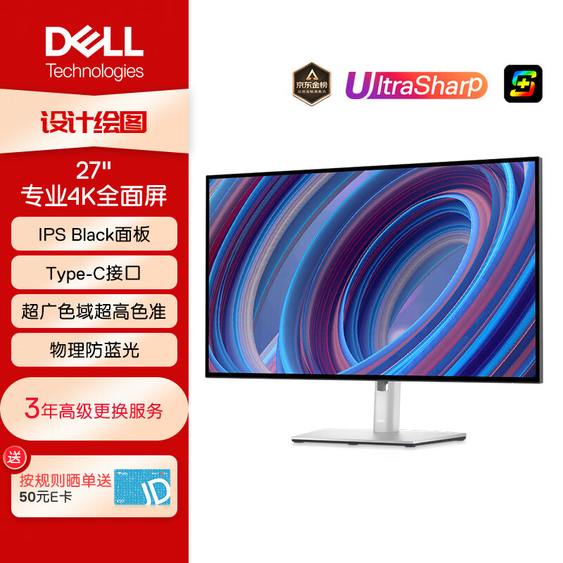戴尔(DELL)UltraSharp 27英寸 4K显示器 IPS Black Type-C90W反向充电 防蓝光 U2723QX【金榜金奖】价格:3599.00元!