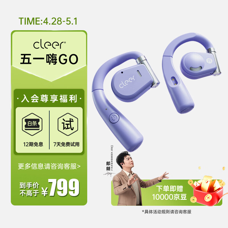 cleerARC音弧蓝牙运动跑步夹耳式耳机无线开车骑行骨传导升级开放挂耳式气传耳麦适用苹果华为节日礼物 紫罗兰【充电盒升级款-续航18H】价格:1099.00元!