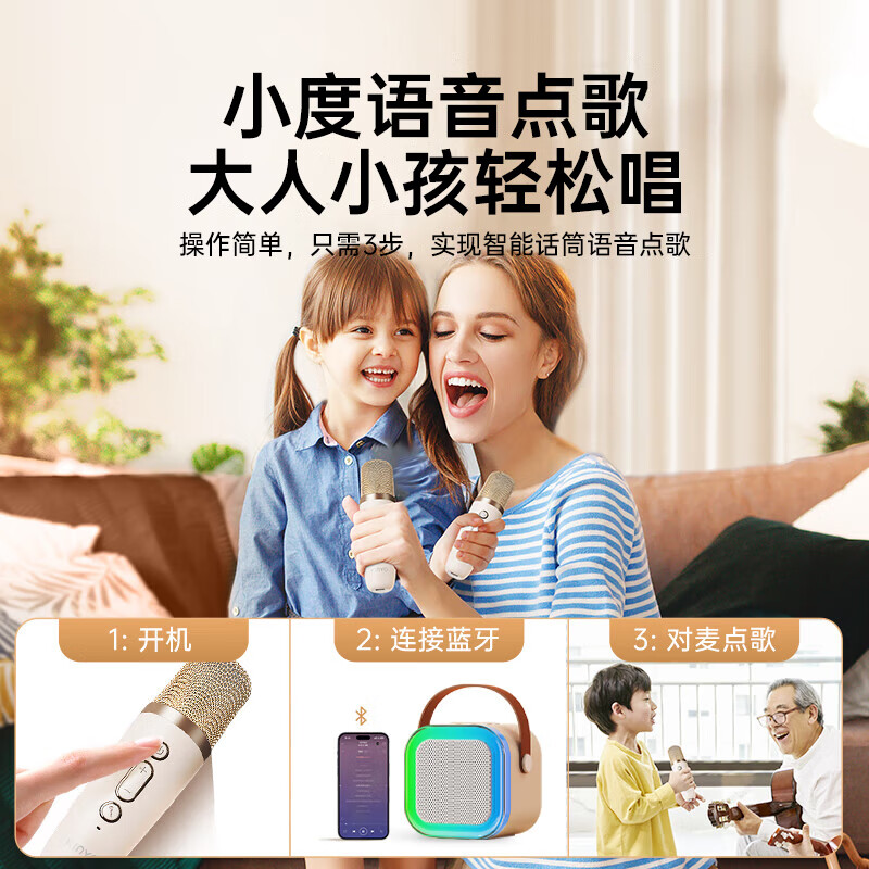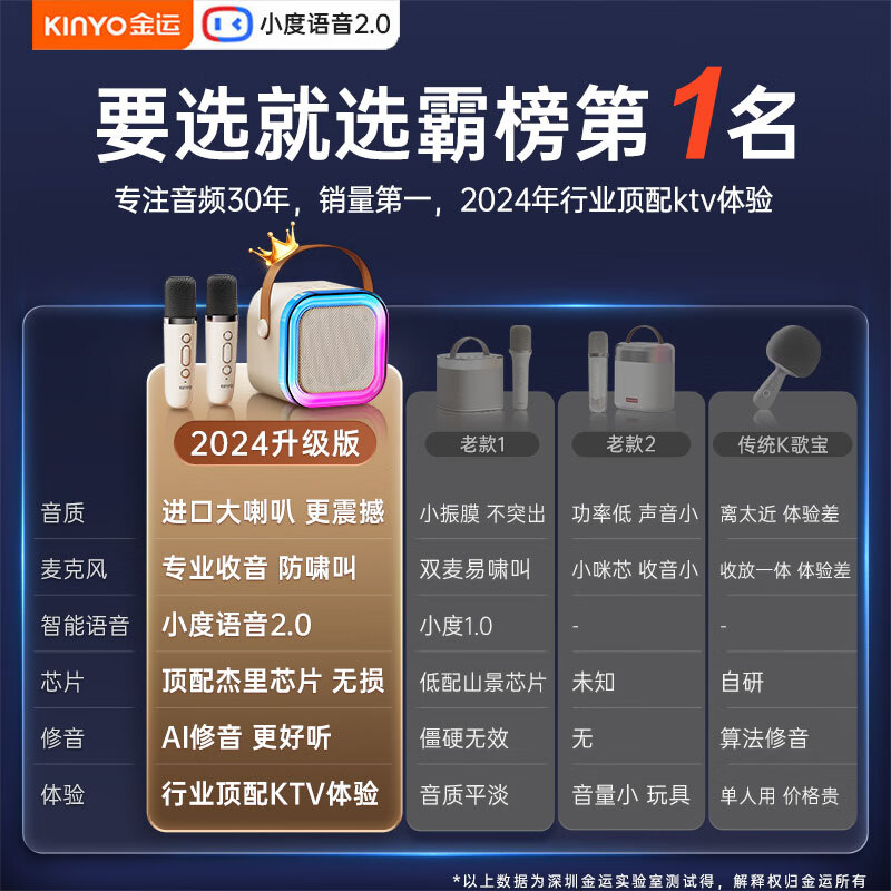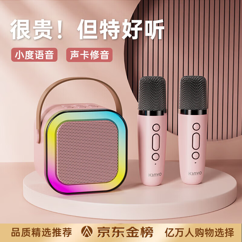 金运 家庭ktv音响套装麦克风话筒音响一体自带声卡家用卡拉ok儿童礼物唱歌便携式无线蓝牙点歌机价格:168.00元!
