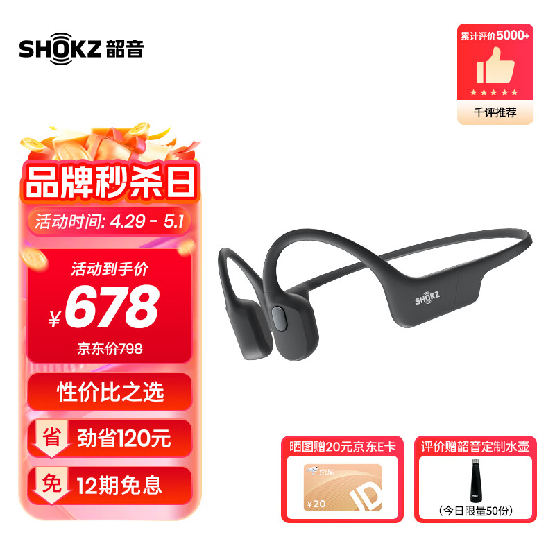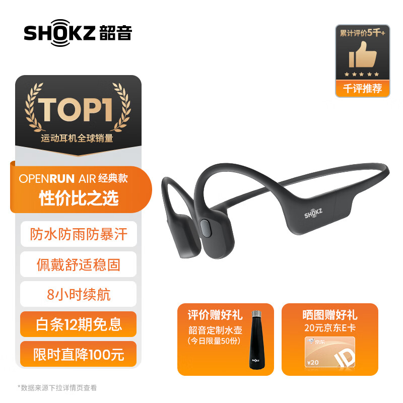 韶音(SHOKZ)OpenRun Air骨传导蓝牙耳机运动耳机开放式耳机跑步骑行不入耳佩戴 10分钟闪电快充 石墨黑价格:678.00元!