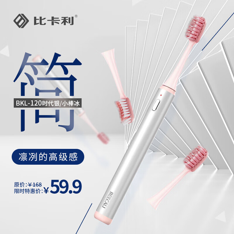 比卡利 小棒冰电动牙刷声波感应充电高档金属机身成人情侣款生日礼物圣诞礼物新年礼物 铝合金时代银价格:59.00元!