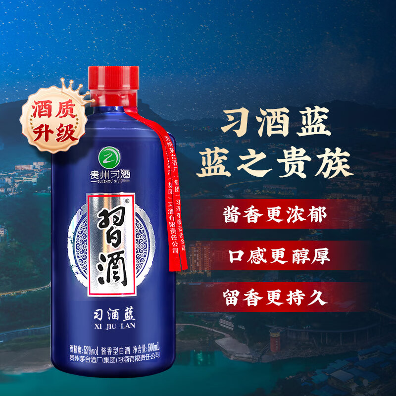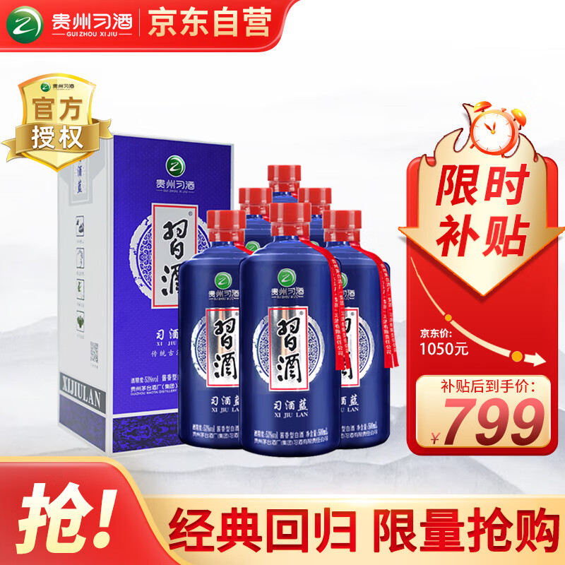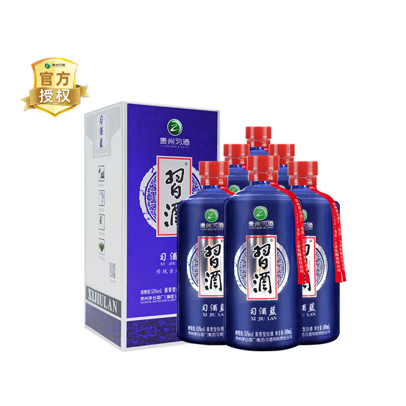 习酒习酒蓝 酱香型白酒 53度 500ml*6瓶 整箱装 贵州白酒价格:799.00元!