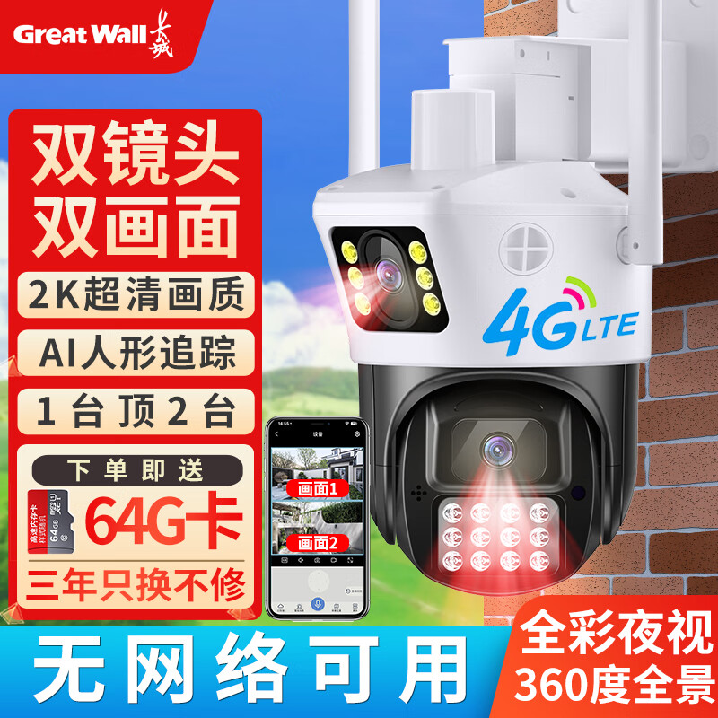 长城4G无线摄像头户外农村手机远程室外无需连wifi监控器家用360度无死角带全彩夜视追踪全景对话价格:175.00元!