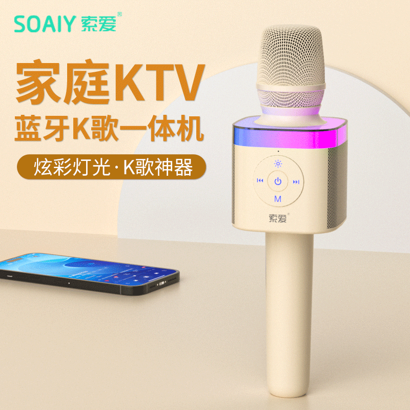 索爱(soaiy)MC62 音响一体麦克风唱歌声卡拉ok套装k歌宝无线蓝牙儿童话筒家庭ktv 【油彩白】价格:199.00元!
