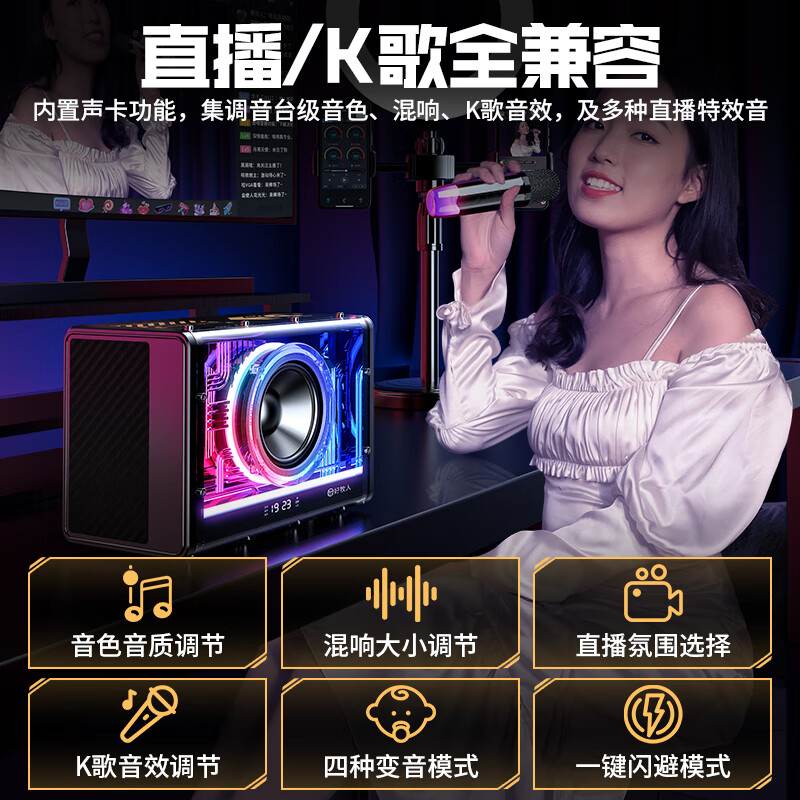 好牧人蓝牙音箱电脑桌面话筒音响一体机自带声卡无线k歌唱歌神器儿童麦克风户外专业家庭ktv卡拉ok娱乐价格:299.00元!