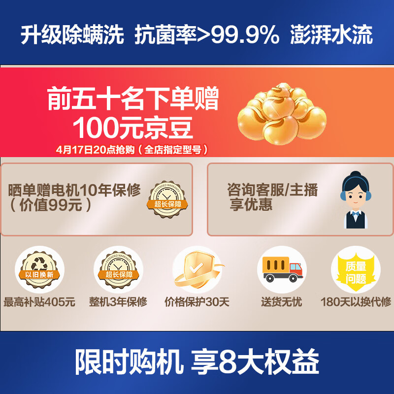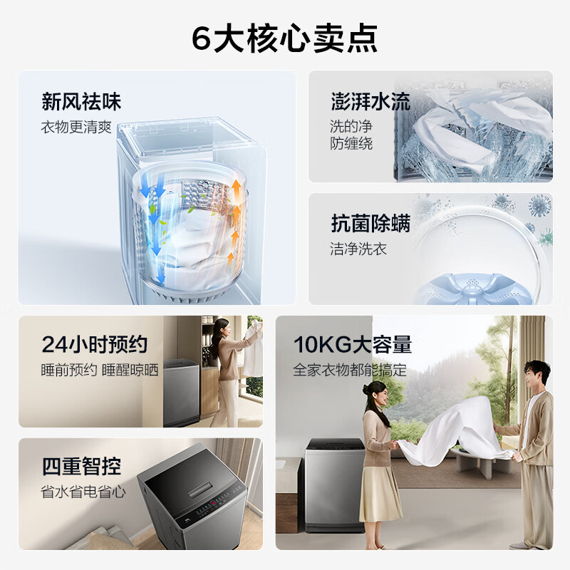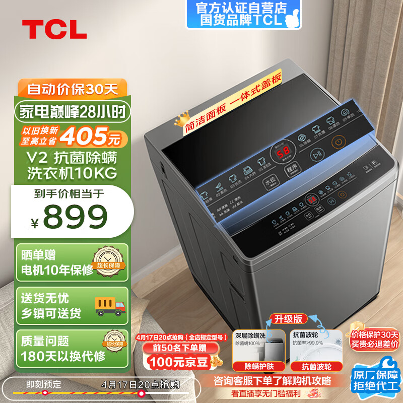 TCL?10公斤新风抗菌洗衣机V2 除螨洗 宿舍租房神器 洗衣机全自动家用 以旧换新 升级版新风祛味B100V2价格:999.00元!