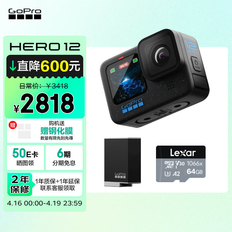 GOPRO HERO12 Black防抖运动相机 摩托车骑行运动摄像机 潜水水下相机 自行车记录仪 新年续航礼盒 HERO 12 Black价格:2718.00元!