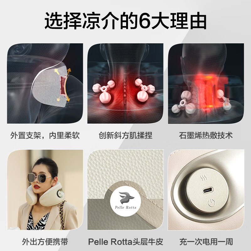 凉介USKI颈椎按摩器 MT01Pro按摩仪 肩颈按摩枕 斜方肌揉捏热敷 按摩器颈椎 生日礼物母亲节 棕色价格:899.00元!
