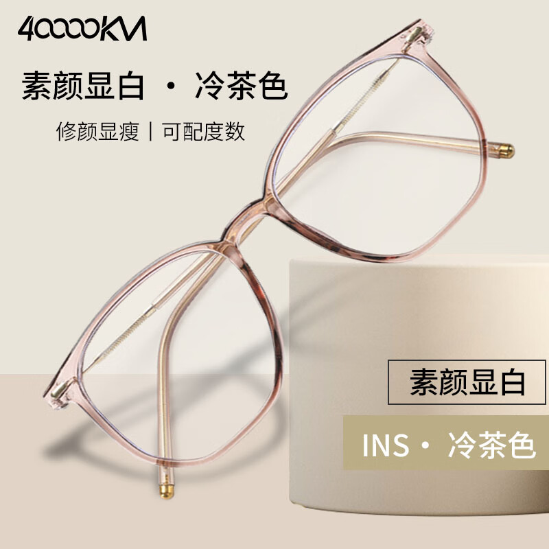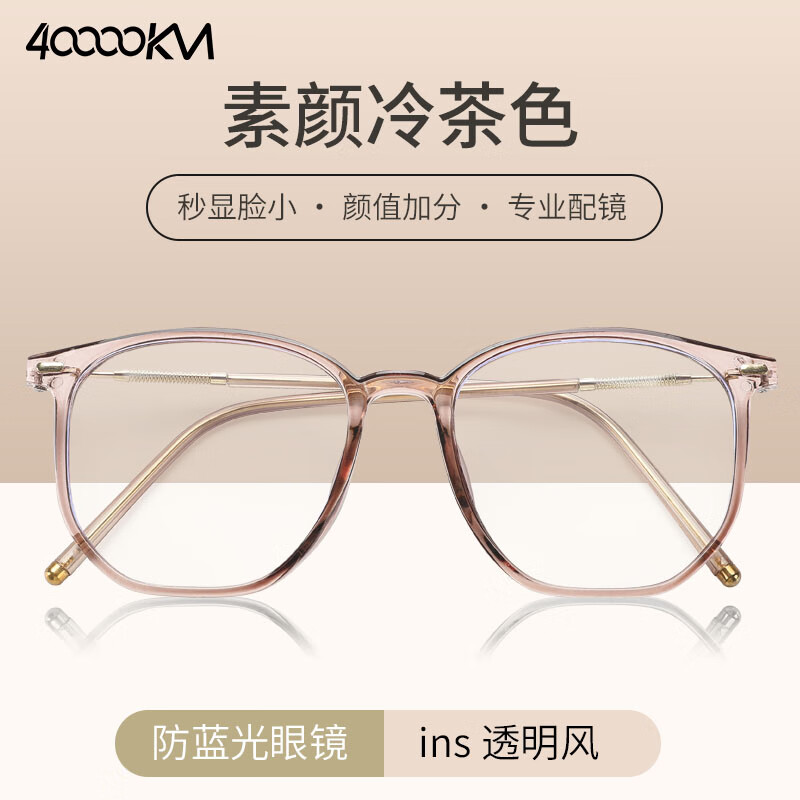 四万公里防蓝光眼镜女士冷茶色素颜眼镜显脸小平光镜配近视眼镜框护目镜价格:49.00元!