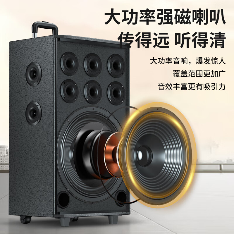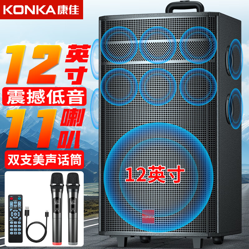 康佳(KONKA)D32 12英寸大功率喇叭重低音广场舞音响移动家用户外K歌蓝牙拉杆便携式音箱无线麦克风双话筒价格:999.00元!