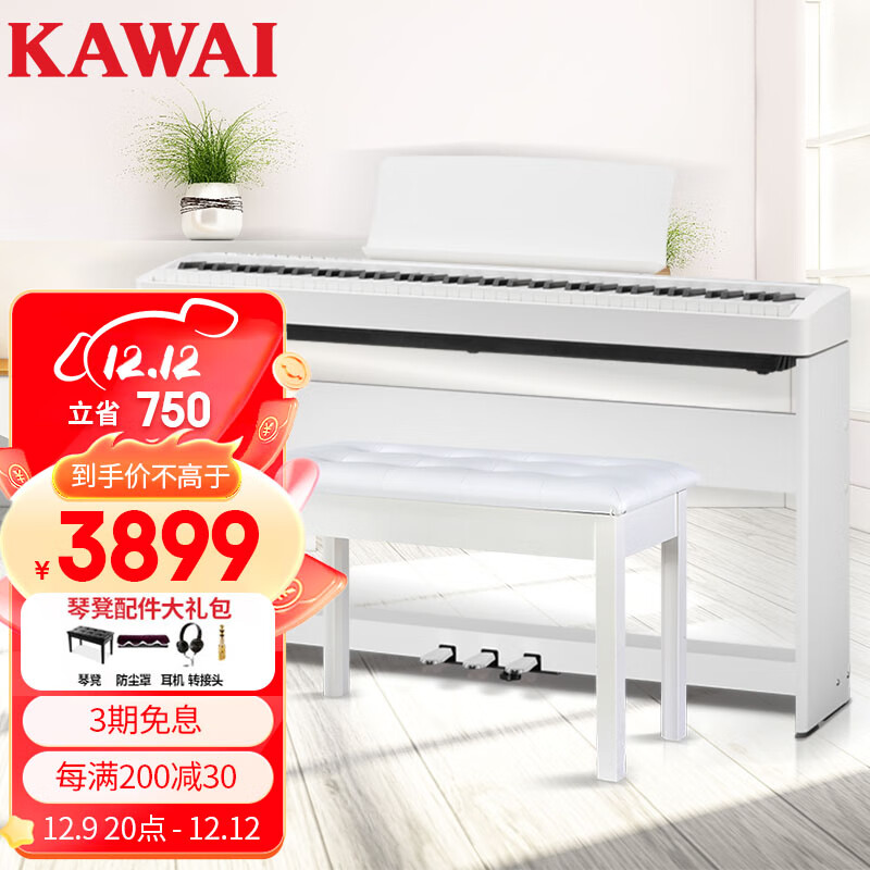 卡瓦依(KAWAI)电钢琴ES120白 88键重锤 卡哇伊数码钢琴成人儿童初学专业家用价格:4559.00元!