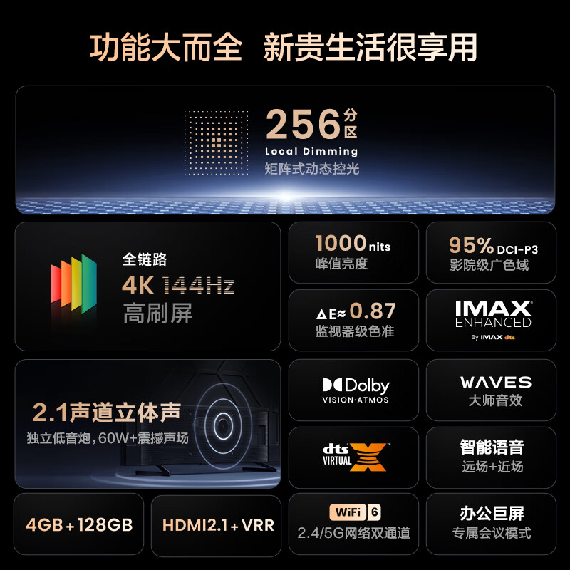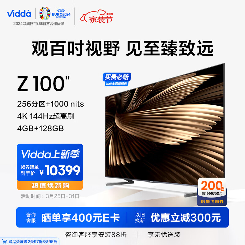 Vidda 海信电视 Z100 100英寸巨幕 4+128G 256分区 1000nit 144Hz 游戏智能液晶电视以旧换新100V7K价格:10999.00元!