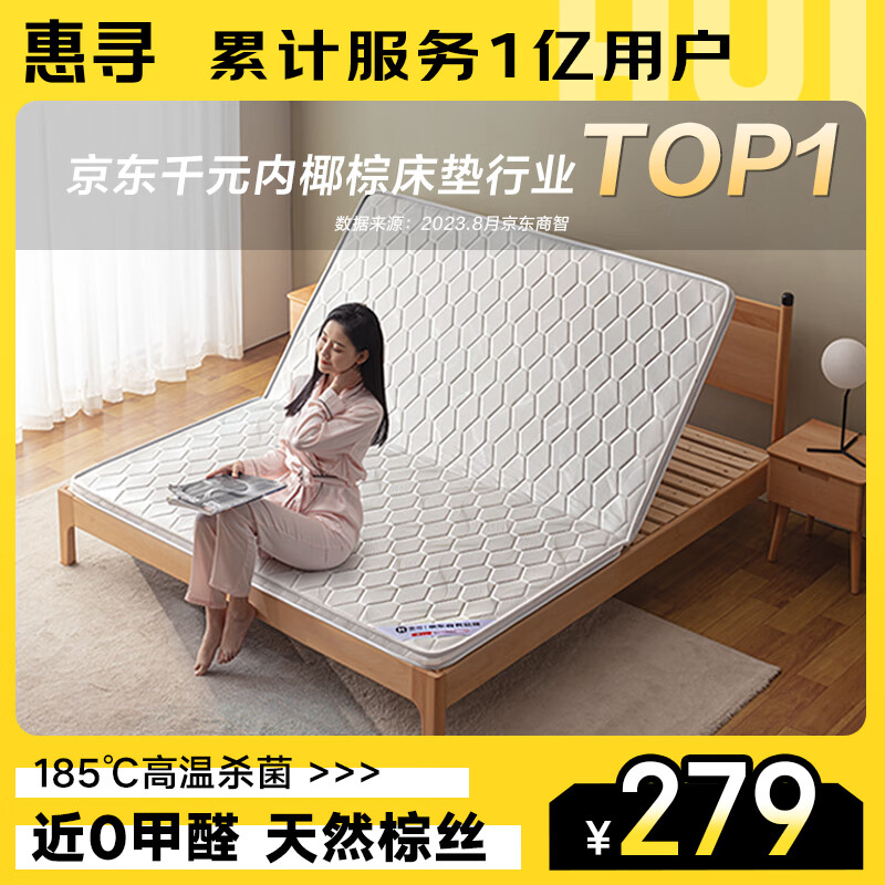 惠寻 京东自有品牌 椰棕床垫硬棕垫薄床垫1.8*2米5cm棕芯3cm折叠价格:279.00元!