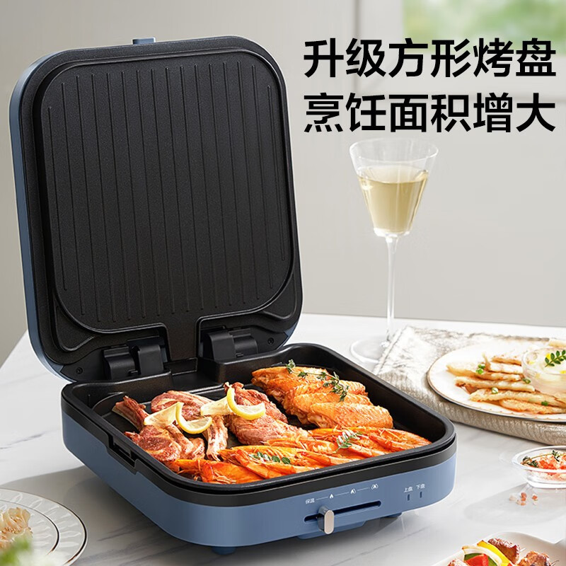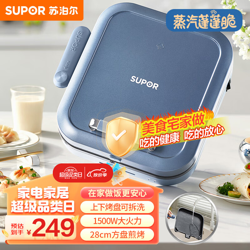 苏泊尔(SUPOR)电饼铛家用电饼档早餐机 双面加热 上下可拆三明治机煎饼锅 方形加大加深多功能烙饼锅JD32RQ862价格:249.00元!