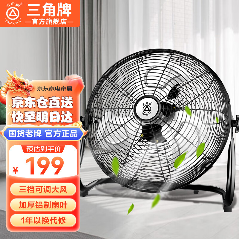 三角牌(Triangle)台式趴地扇工业风扇大功率强力趴地风扇家用商用地扇工厂电风扇 雅典黑(18吋)价格:199.00元!