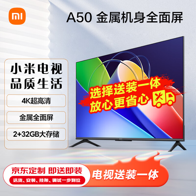 小米电视A50 2+32GB【服务套装-送装一体含挂架】金属屏 50英寸智能平板电视机L50MA-A价格:1669.00元!