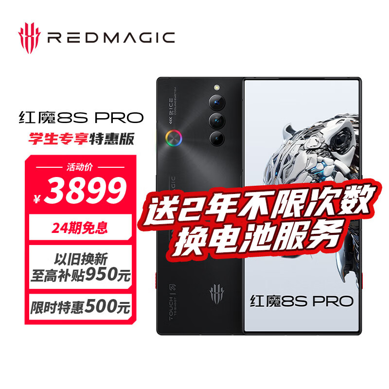 努比亚 nubia 红魔8S Pro屏下游戏手机 8GB+256GB暗夜骑士 第二代骁龙8 6000mAh电池 5G手机【学生专属】价格:4399.00元!