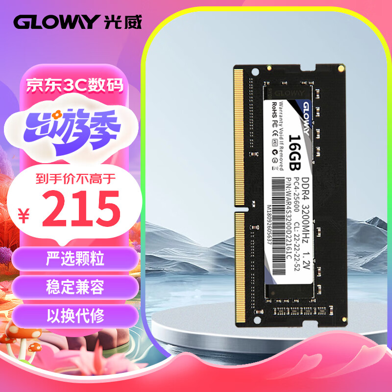 光威(Gloway)16GB DDR4 3200 笔记本内存条 战将系列价格:215.00元!