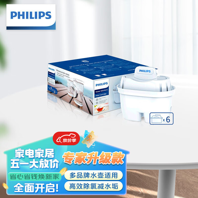 飞利浦(PHILIPS)家用净水壶滤芯 滤水壶净水器去除水垢专家版滤芯AWP210 6枚装价格:129.00元!