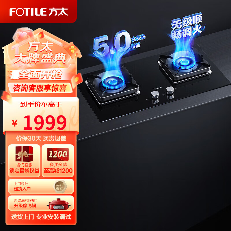 方太(FOTILE)燃气灶天然气炉灶6嵌入式家用厨房双眼灶5KW火力灶具单品TH28B(天然气)价格:1999.00元!
