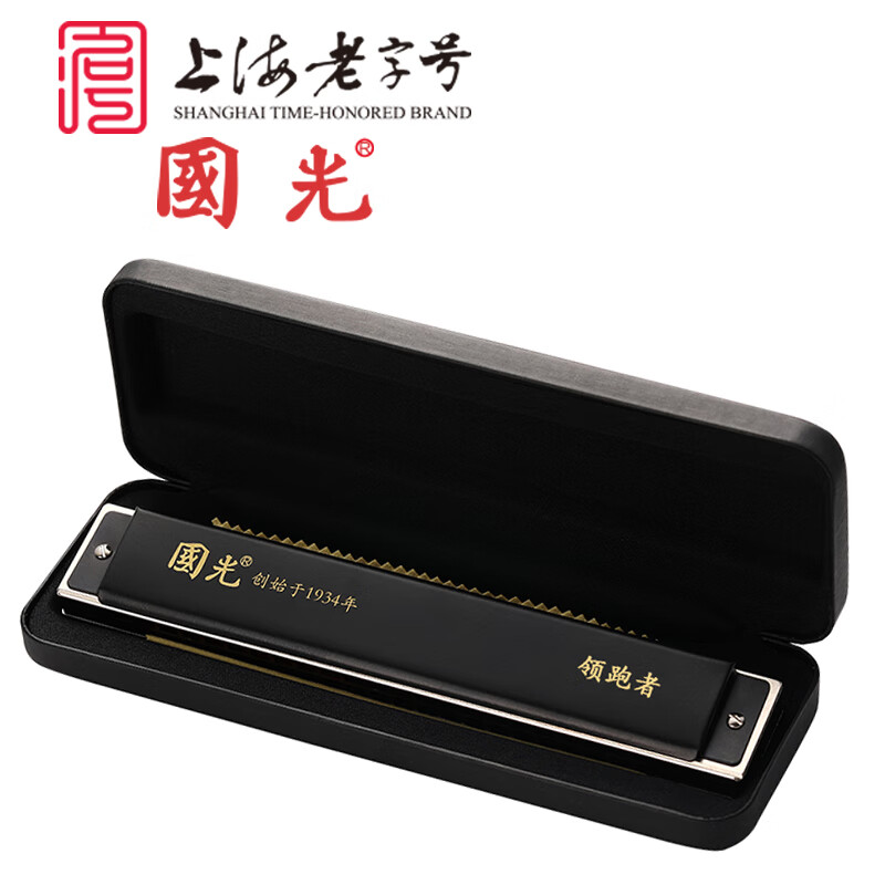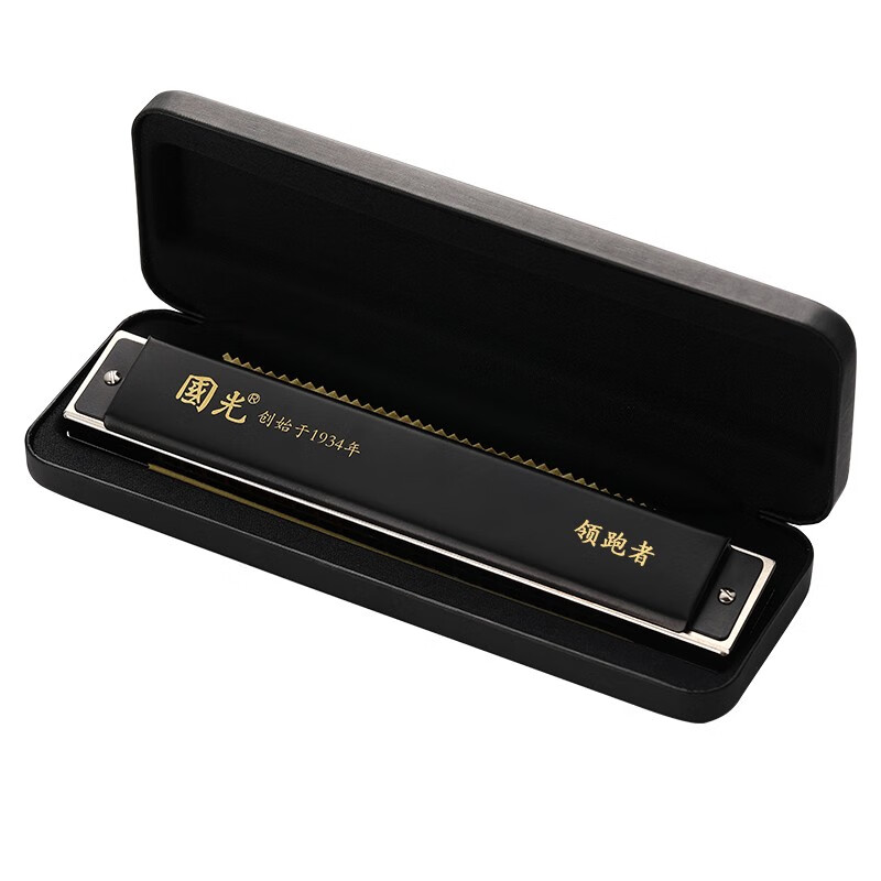 国光24孔领跑者 波动音 黄铜黑磨砂盖板复音C调口琴专业演奏 进口音簧价格:298.00元!