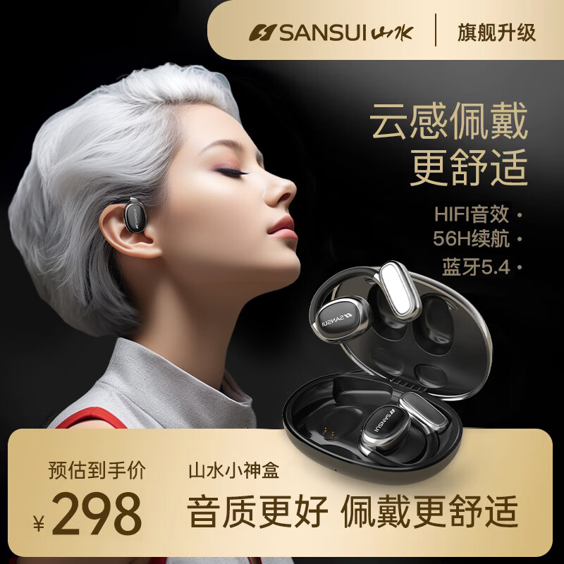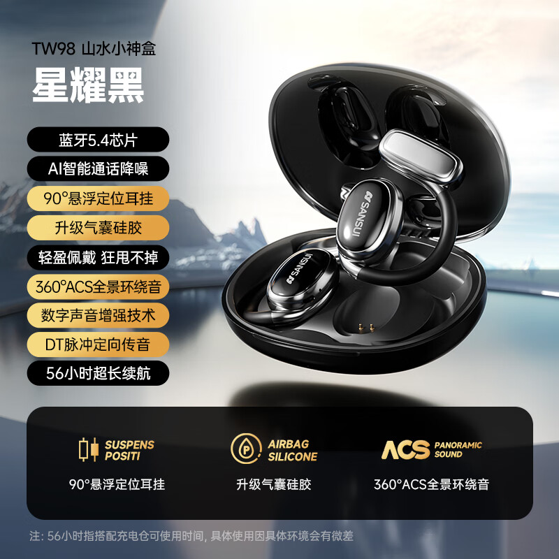 山水(SANSUI)TW98【万人推荐小神盒】无线蓝牙耳机 骨传导概念挂耳式夹耳不入耳长续航运动降噪适用华为苹果 黑价格:348.00元!