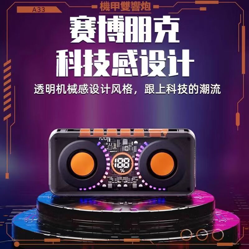 雅兰仕(EARISE)A33透明机甲小钢炮蓝牙重低音炮机甲风RGB灯电竞游戏音响高音质家用便携户外宿舍大音量双喇叭音箱价格:119.90元!