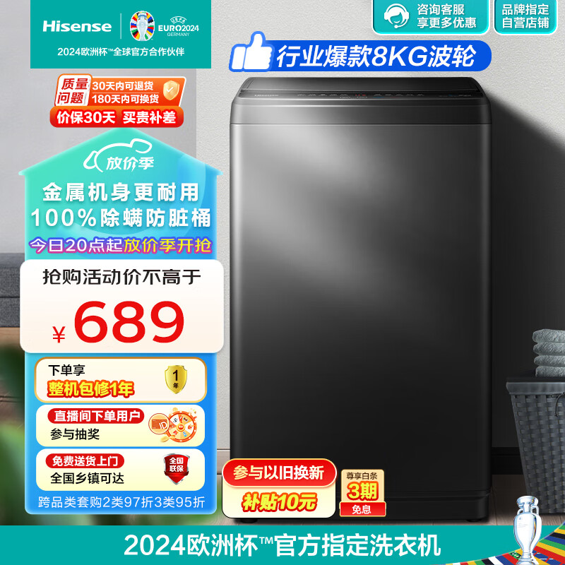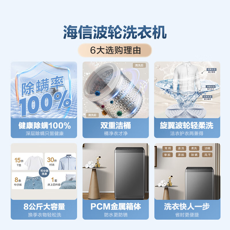 海信(Hisense)波轮洗衣机全自动 某尔同款 8公斤洗衣机 家用宿舍 租房神器 脱水免清洗除螨HB80DA35以旧换新价格:689.00元!