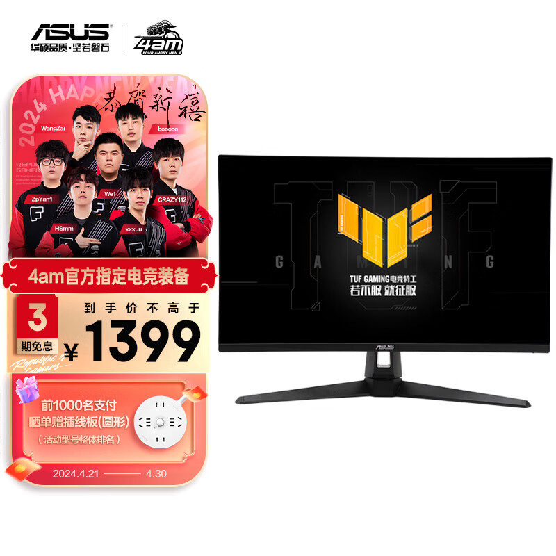华硕TUF VG27AQ3A小金刚PLUS 27英寸游戏2K 144Hz显示器超频180Hz FastIPS G-sync 1ms响应HDR10价格:1449.00元!